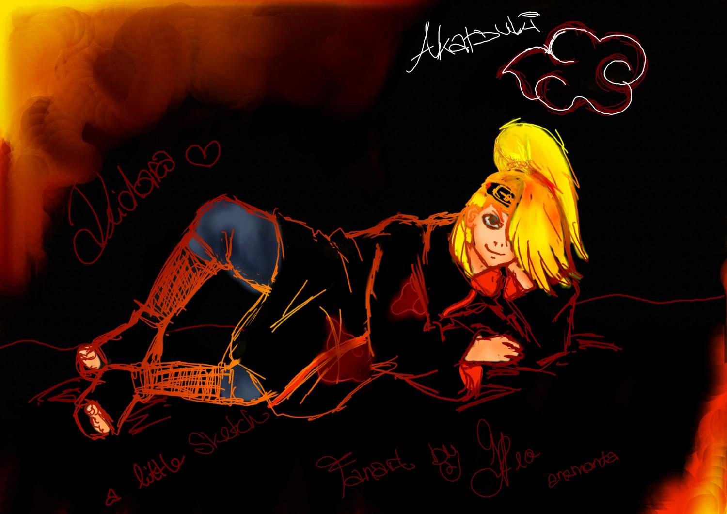 • soo mein neustes bild...grade fertig gecolort^^ mit dem hg hab ich ein bisschen herumexperimentiert..xD ich weiß sieht doof aus...und die farben harmonieren sowas von überhaupt nicht :D ..xD aber es hat irgendwie was dschungelartiges..xD die outlines sind miserabel geworden>.< und die augen sind schief..xD hab die skizze und die outlines im unterricht gemacht..xD zwischen dem und dem letzten bild hab ich auch noch einige andre bilder gemalt^^ ich hab jetzt mein erstes copic marker set :D *freu* und ich male in letzter zeit häufig Deidara..und manchmal auch tobi..xDD ich liebe Deidara einfach <3..xD stell die mal rein wenn ich lust zu hab...vll morgen...jetzt bin ich zu müde dafür^.^ dann kommentier ich auch noch deinen beitrag kanako^^..xD