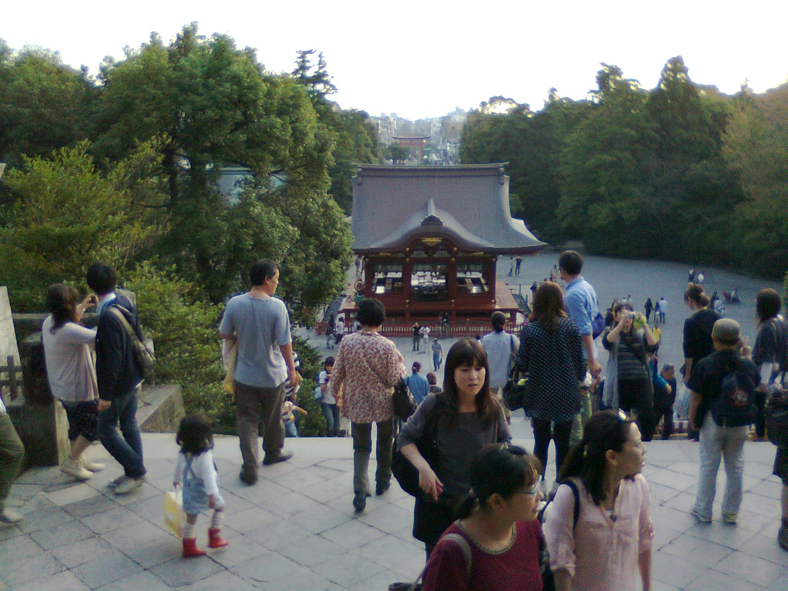 Die Straße löst sich sehr bald auf und es bleibt ein kleiner Weg. Treppen führen bergan und bald werdet ihr euch fragen, ob ihr noch auf dem rechten Weg seid, da es über Wurzeln und Steine führt. Aber keine Sorge, es stimmt noch. Nach einer Viertelstunde erreicht ihr den Kuzuharaoka-jinja Schrein und dessen Besuch ist umsonst. Sehr schön gelegen lädt er zu einem Espresso oder Tee aus dem dort natürlich vorhandenem Getränkeautomaten ein.^^
