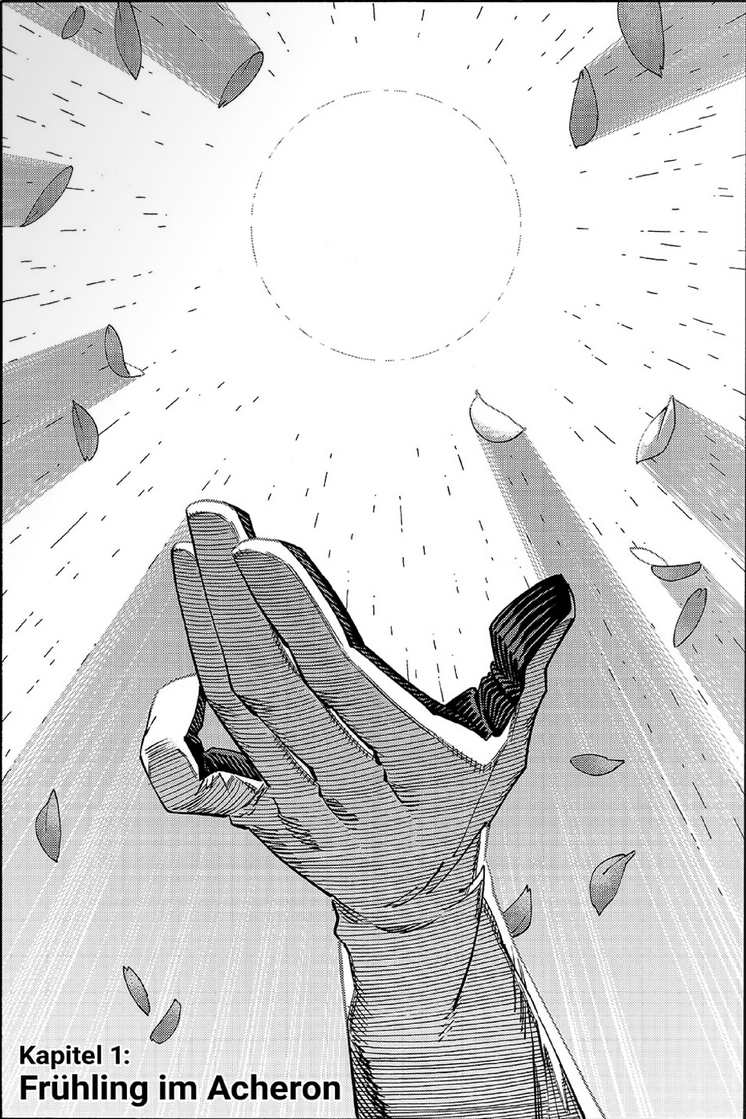 Tag 3 – 08:59 Uhr – Gelände der Schule - Schulgebäude - AusgangMit geöffnetem Mund und weit aufgerissenen Augen hatte Yoshio gesehen, wie dieser Junge, der ihn fast überrannt hätte, auf den silberhaarigen, diszipliniert wirkenden los ging. Es gab aus seiner Perspektive keine Möglichkeit, wirklich zu sehen, was dort ablief zwischen den Beiden, welche Worte gewechselt wurden, geschweige denn, worum es dem Trampeltier ging. Doch es war scheinbar etwas, dass dem Gegenüber nicht gefiel. Und zwar so wenig, dass, nachdem er etwas Abstand zwischen sich und seinen Angreifer brachte, er eine makabere Szene einläutete. Mit einem kalten, blauen Leuchten, welches Yoshio zuvor noch nie gesehen hatte, entstand etwas, es materialisierte sich aus dem Nichts. So, wie ein Geist in einem Horrorfilm, der das Blut in den Adern gefrieren lässt, begann es scheinbar irgendwo an seiner Hand, und in kürzester Zeit war aus dem lang gezogenen, unwirklich scheinendem Schimmer eine Klinge geworden. Das Schwert, das dem gefassten jungen Mann nun zur Verfügung stand, hatte eine recht lange Klinge, die etwas weniger als Arm breit schien. Ein solches Schwert hatte Yoshio schon mal gesehen, wobei er sich nicht mehr entsinnen konnte, wo. Das Silber des bizarren Schwertes besaß den selben Farbton wie die Haare desjenigen, der es schwang. Mit einer gezielten, leichtfüßigen und doch vollkommen kontrollierten Bewegung stieß der Yoshio Unbekannte seine Klinge in den Körper des Trampels, woraufhin der Getroffene in sich zusammensackte und regungslos am Boden liegen blieb. Mit einem Mal war ein anderer Mensch in dieser Szenerie, doch bevor Yoshio wirklich Zeit hatte, zu realisieren, dass er da war, wurde der Neuankömmling von der blutigen Klinge ebenso leicht durchtrennt wie sein Vorgänger. Als spürte die Klinge keinen Widerstand, glitt das Metall nur so durch den armen Menschen. Nur ein geringer Anteil tief roten Blutes ran an der Klinge hinab, dass mit einer fast schon automatisch wirkenden Bewegung zu Boden geschleudert wurde.