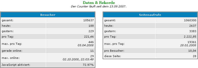 Was aber zu sagen ist: Wir haben die 100.000 Besucher-Marke überschritten und über 1.060.000 Seitenaufrufe im Wiki gehabt.